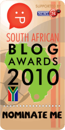 Nominations are now open for the 2010 South African Blog Awards. I would REALLY appreciate it if you would take a few moments to click on the link below and nominate me in the categories Best Food & Wine blog and Best Overseas Blog. Only the blogs with the most nominations go through to be finalists, so every nomination counts!! Pretty please with chocolate sprinkles? Thanks ever so much 🙂