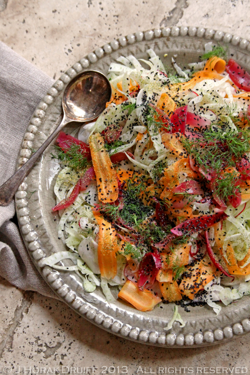 Sunday morning dawned… well, rather grey and drizzly actually – but we were beginning to get used to the vagaries of the Irish weather! After breakfast it was straight into the training room for a bit of mental gymnastics in the form of a presentation on workflow and mastering the art of post-processing. While this was in progress, Jamie and I welcomed back another of our Plate to Page alumni – the talented David (Kitchen 72) who attended Plate to Page Weimar back in 2011. We pride ourselves on keeping in touch with our Plate to Page alumni and love the many lasting friendships that have resulted from the workshops, and after the success last year of asking alumna Hayley back to cater for us in Somerset, we had invited David to do the same in Ireland. While we were busy with photography and writing workshops throughout the morning, he worked tirelessly in the kitchen to whip up quite the most amazing range of salads I have ever seen, including a raw and pickled salad with carrots, radish, fennel and fennel pollen; a kale salad packed full of sunflower seeds; and braised baby carrots with chard stems that totally blew me away. These were all made to accompany some perfect sides of Irish salmon which David barbecued for us and served with a rather spectacular beetroot sauce. But the show-stopper was without a doubt the dessert of grilled pears with beetroot cake crumble, sorrel granita and apple blossom leaves – not only gloriously colourful but a study in fresh flavour and textural contrasts.