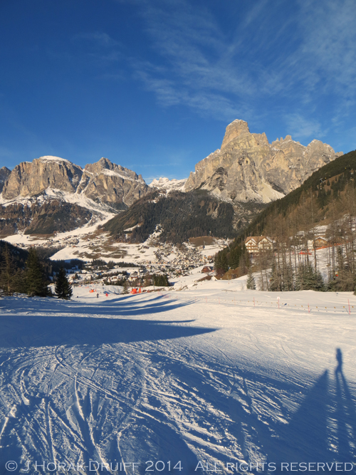 There were still two huts remaining – but as we had lingered quite a while at each of the previous huts, and squeezed in as much skiing as we possibly could, we had run out of time, so all there was left to do was ski back down to La Villa and watch the sunset turning the Dolomite mountains to gold… and dream of the Gourmet Ski Safari 2014.