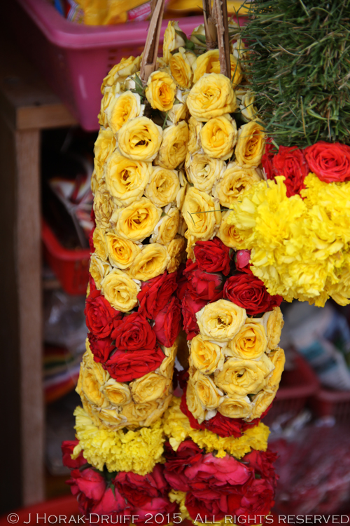 The final ethnic neighbourhood of Singapore is the gloriously chaotic one described in my opening paragraph: Little India. This bit of land located across the Singapore River from Chinatown and north of Kampong Glam is called Tekka by the local Tamil population and originated as the overspill from Chulia Kampong, the area originally designated by Sir Stamford raffles for the Tamil people. As it is located conveniently along the Serangoon River, the area was originally very attractive for raising cattle and historically there was a brisk trade in livestock that went on here. By the end of the 19th century, the area had become less agricultural and came to resemble a Tamil ethnic neighbourhood. Although Little India is no longer exclusively a Tamil area, it still maintains a strong ethnic character in the shops and the population – and if you really want to experience it to its fullest, visit over a weekend as we did when workers have the day off and crowd the streets shopping, eating and socialising. Serangoon Road itself with its covered pavements is lined with a myriad of beautiful fabric and sari shops, as well as takeaway restaurants and spice shops. Trade is no less brisk on the pavements outside where the air is thick with the aroma of handmade traditional jasmine, rose and marigold flower garlands, sold to be used as offerings in nearby Hindu temples.