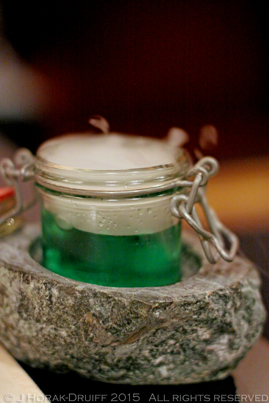 I have to admit I was slightly terrified at the sight of the green, smoking concoction and the prospect of having to consume it. Loved the cocktail though!